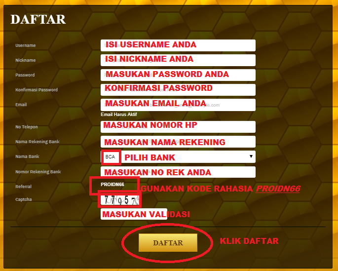 * Jika sudah semua terisi yang harus dilakukan lagi adalah untuk memilih DAFTAR pada bagian paling bawah.